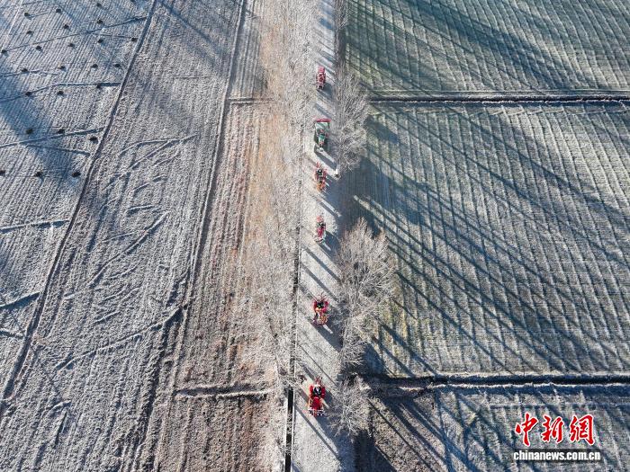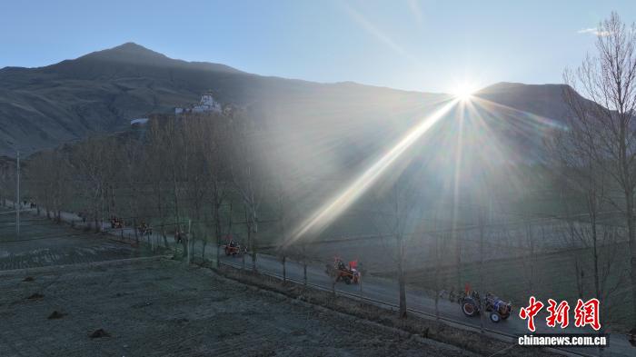 图为西躲山北市乃东区门中岗社区村平易近正前去秋耕典礼现场。(无人机像片)中新社记者 贡嘎去紧 摄
