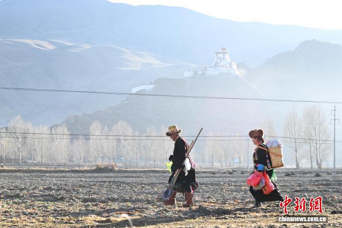 图为西躲山北市乃东区门中岗社区村平易近正前去秋耕典礼现场。中新社记者 贡嘎去紧 摄