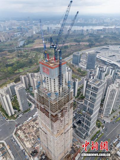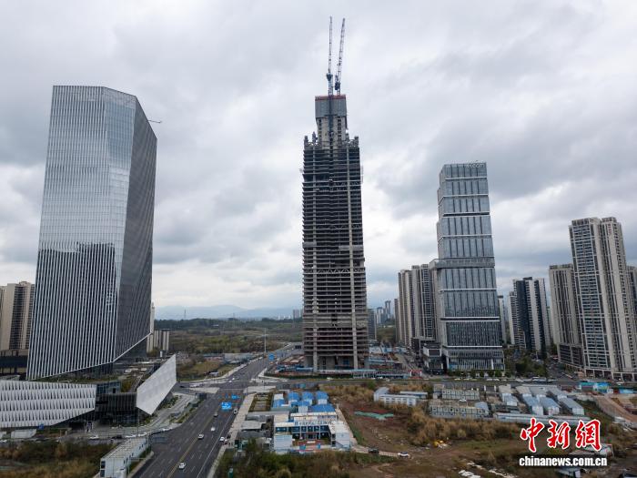 拍扶植中的中海成皆天府新区超下层名目。今朝该名目主体下度已冲破300米,是散写字楼、贸易、旅店、不雅光于1体的年夜型归纳体,主塔总修筑下度489米,修成后将成为成皆新天标。(无人机相片)中新社记者 弛浪 摄