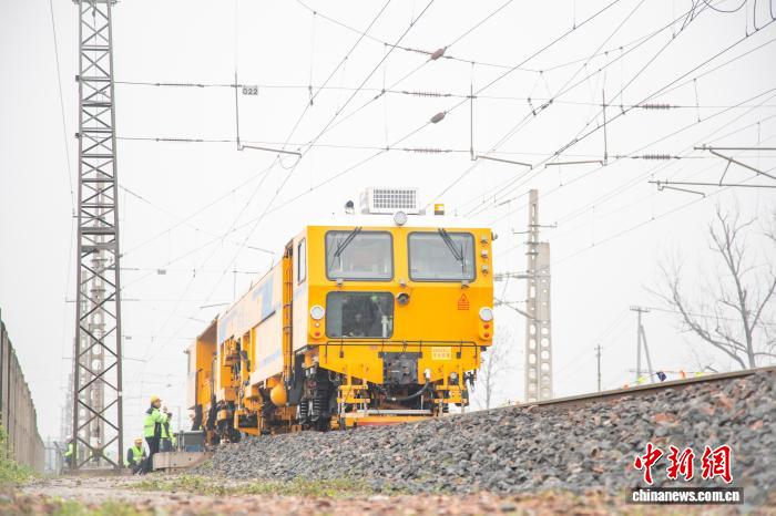 图为年夜机捣固车对于线道停止捣固。王阔宁磊 摄